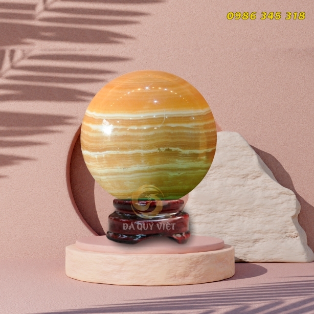 Là hình dạng tròn và kích thước nhỏ gọn, phù hợp để đặt trên bàn làm việc, kệ sách hoặc bất kỳ không gian nào trong nhà. Với vân gỗ tự nhiên trên bề mặt, quả cầu đá phong thuỷ mang lại vẻ đẹp tự nhiên và gần gũi với thiên nhiên.