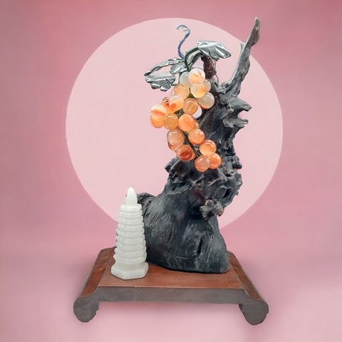 Những hình ảnh chi tiết sẽ giúp ta thấy sự tài hoa của những nghệ nhân chế tác ra tác phẩm, những trái nho bóng đẹp, xanh, đỏ và đặc biệt là chất ngọc cực kì đẹp , tạo cho ta cảm giác như những trái nho thật